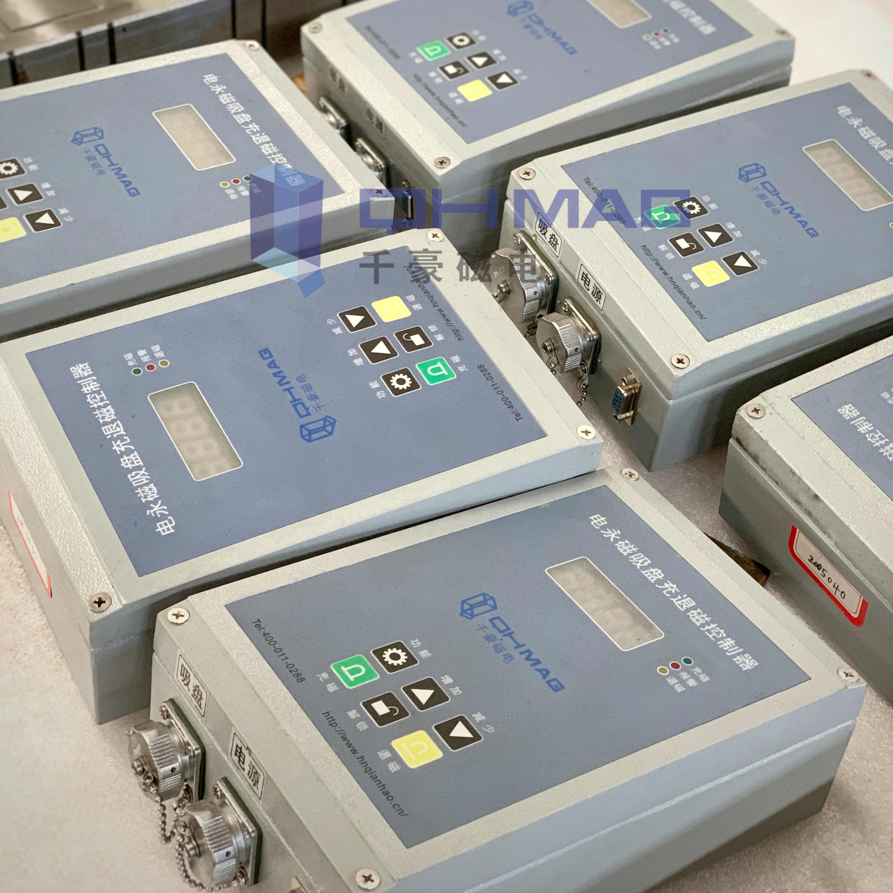 電永磁吸盤控制器又名電控永磁吸盤控制器,又稱電永磁吸盤充退磁控制器,配套電永磁吸盤使用。湖南千豪磁電電永磁吸盤控制器相比市場(chǎng)上眾多電永磁吸盤控制器來說,千豪電永磁吸盤控制器具備過流保護(hù)功能,當(dāng)磁盤發(fā)生異常導(dǎo)致電流過大,控制器自動(dòng)切斷輸出,并由該通道指示燈紅綠交替閃爍報(bào)警,此時(shí)需要斷電檢查外部電路,排除故障后再重新啟動(dòng)控制器。提高了工作的安全性,間接提高了電永磁吸盤的使用壽命!