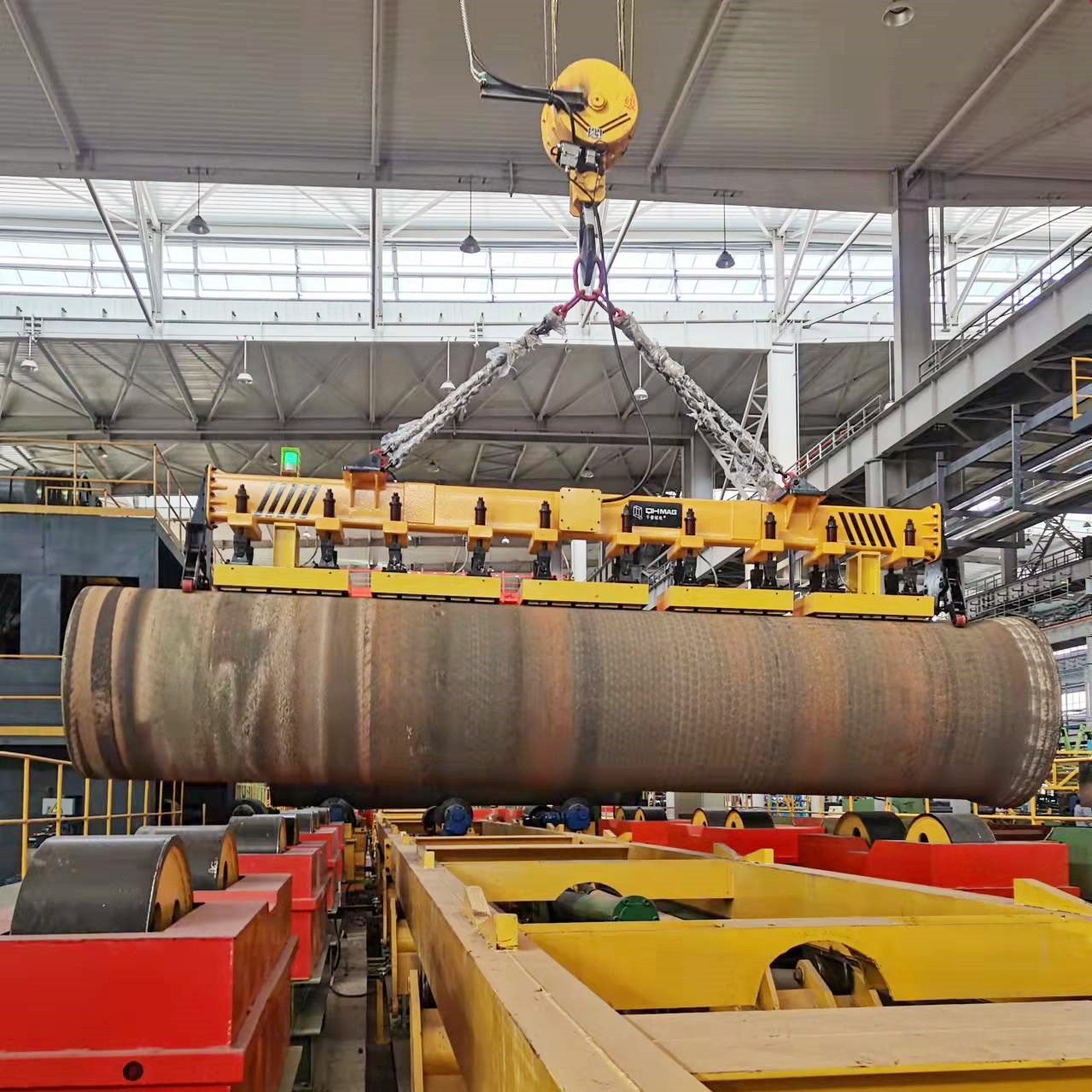 千豪電永磁吊具在吊鋼板,鋼管,鑄管等導(dǎo)磁工件上取得廣大顧客的認(rèn)可與返購。使用電永磁吊具吊裝鋼管及鑄管圓形導(dǎo)磁工件,只需要吸附一部分接觸面即可吸吊起8噸、10噸、16噸,32噸.