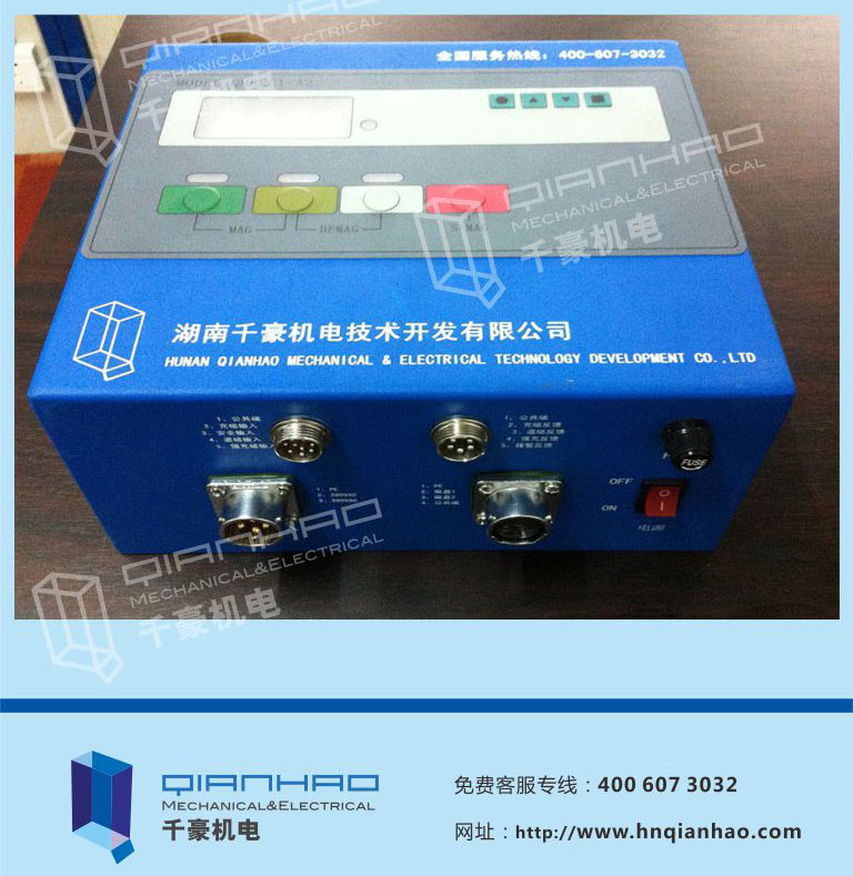 具有安全保護功能:可通過解鎖輸入觸電信號和充磁狀態輸出觸點實現聯動,設有可調的充(退)磁電流(或短路)保護與欠流(或斷路)報警功能;所有設置參數與運行狀態均可通過主機面板實行監控,并具有電源頻率自動跟蹤功能;所有1-8個通道(需要更多通道可根據用戶要求定制),每個通道可按要求設置為開啟或關閉,通過退磁或消磁操作,能有效除工件表面剩磁。
