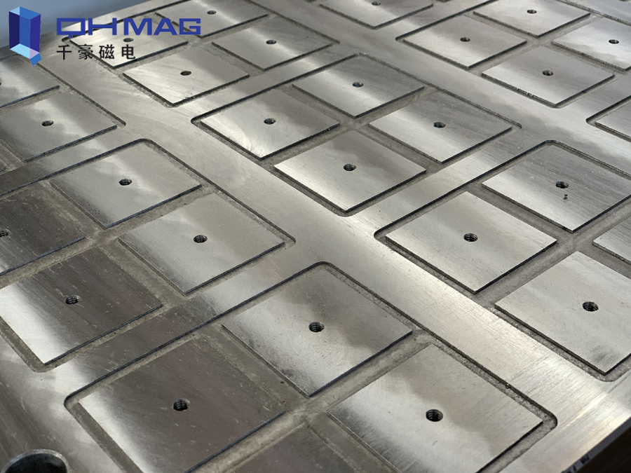 電永磁吸盤使用于CNC加工中心,常作輔助定位調整工具——定位夾具用。用于在加工中心對單件、小批量、工作量較大的模具進行調整,實現磁性定位,避免模具夾持時對其所造成的損傷。對單件、小批量、工作量較大的模具加工,一般可直接在機床工作臺面上通過應用電永磁吸盤進行調整,從而實現定位與夾緊,然后通過加工坐標系的設定來確定零件的位置。簡單來說就是用于夾持定位工件,讓工件便于加工,這就是加工中心電永磁吸盤的用處。千豪磁電設計的電永磁吸盤是擁有自動輔助定位功能的新型電控永磁吸盤,電永磁吸盤3s即可完成工件的裝夾定位,一面裝夾五面加工,真正實現高效率加工作業。